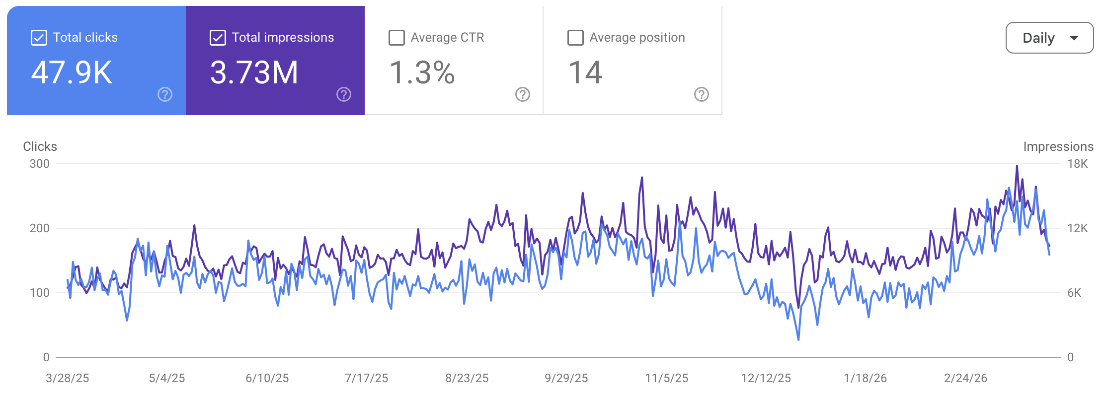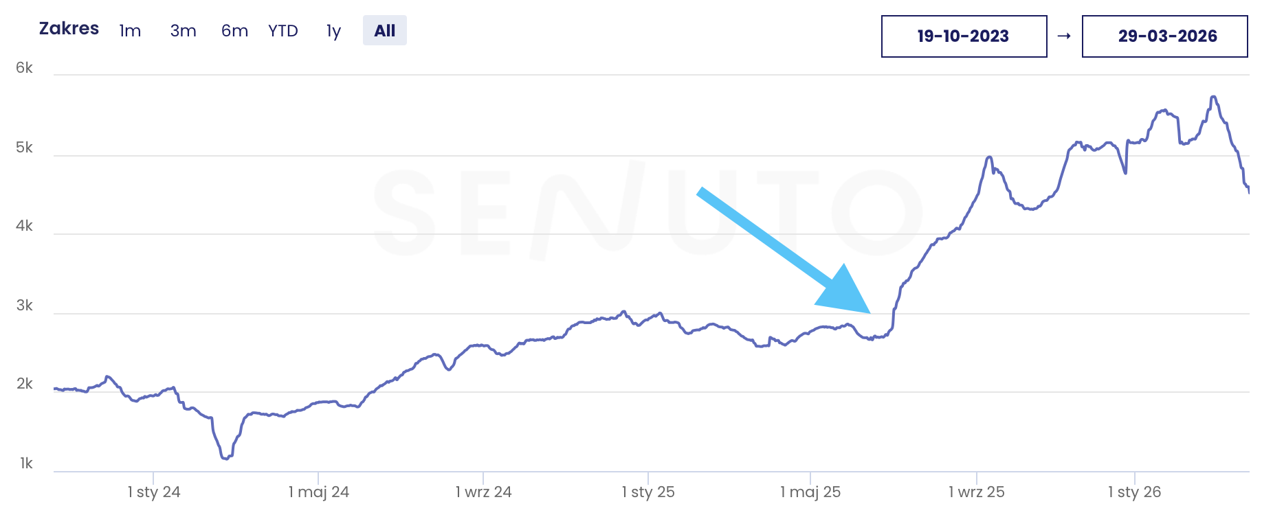 Dzięki konsekwentnej pracy nad rozwojem podkategorii, optymalizacją treści i wzmacnianiem struktury sklepu udało się osiągnąć jeszcze lepsze efekty widoczności. Projekt nadal trwa, a kolejne wdrożenia stopniowo przekładają się na dalszy wzrost ruchu i coraz mocniejszą obecność sklepu w wynikach wyszukiwania Google.